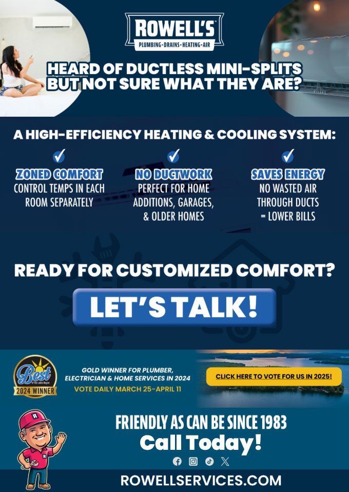 "Friendly As Can Be Since 1983!" When you need help with your plumbing, drains, heating, cooling or electrical in Plymouth, you can always rely on Rowell's Services! Call us now or book online!